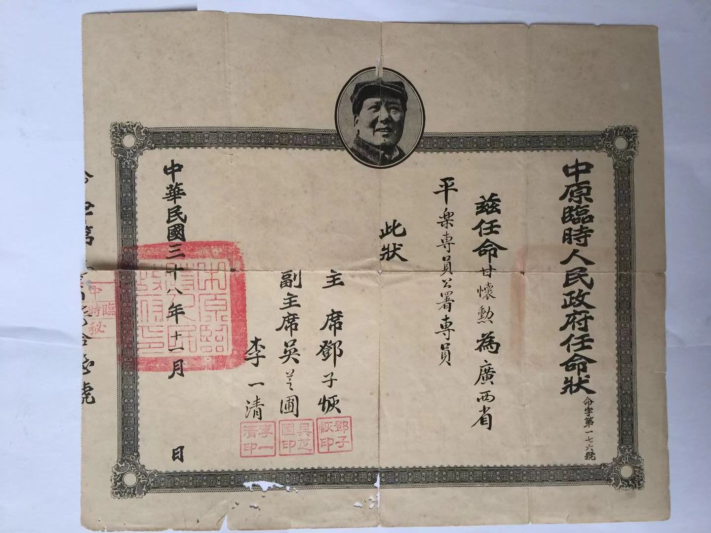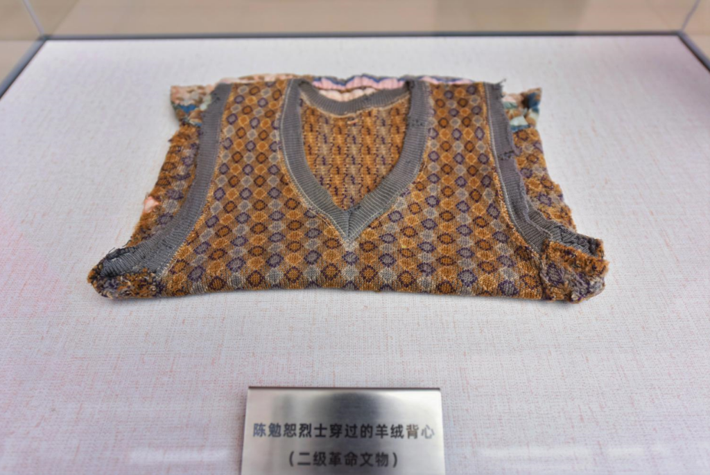 该羊绒背心是陈勉恕生前穿过的羊绒背心。1927年,蒋介石发动 “四一二”反革命政变,时任中国共产党南宁支部书记的陈勉恕被国民党反动派通缉,被迫转移到香港。为躲避敌人追捕,他买下这件款式新颖的羊绒背心用于乔装打扮,自称是海外留学归来的学生,成功地掩护了自己共产党员的身份。此后,他还参加了广州起义,坚持在香港进行革命斗争,需要伪装时,他就穿起这件羊绒背心,有时候还会借给战友穿。陈勉恕一生辗转广州、上海、香港等地进行革命活动,这件羊绒背心也伴随他走南闯北,见证了他的革命历程。1938年,陈勉恕因积劳成疾病逝,他一生勤俭,这件羊绒背心是他为数不多的遗物,被其家人珍藏。该件羊绒背心由其孙子陈其华捐赠给广西革命纪念馆。