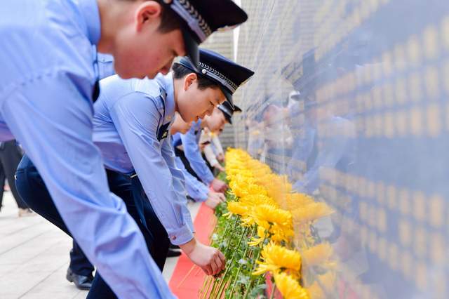 全体人员瞻仰烈士纪念碑和烈士英名墙