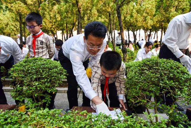 大家手持鲜花,缓步绕行纪念碑,瞻仰烈士英名墙后,来到烈士墓区,俯身于墓碑前,仔细擦拭墓碑,为每一座烈士墓献上鲜花,并行鞠躬礼,表达对先烈们的无限哀思和崇高敬意。
