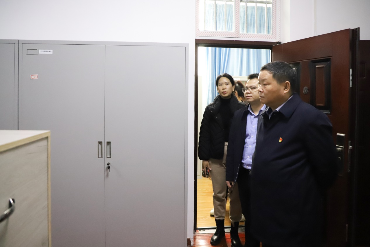 自治区烈士陵园(广西革命纪念馆)主任、馆长肖志龙检查文物库房