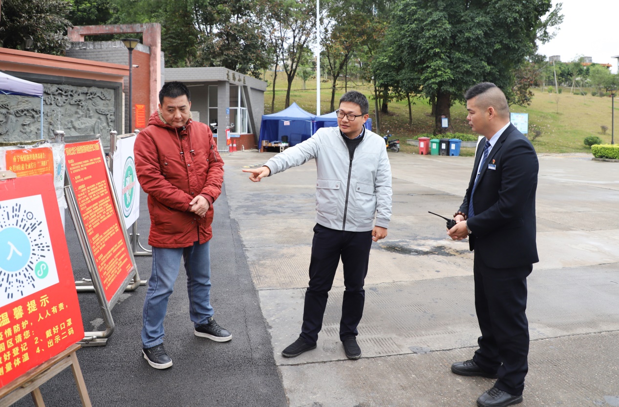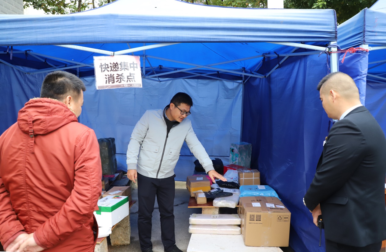 自治区烈士陵园(广西革命纪念馆)副主任、副馆长刘正检查快递集中消杀点