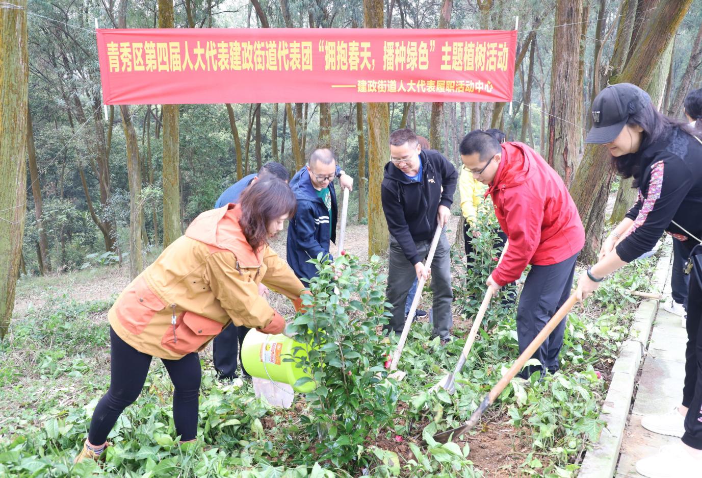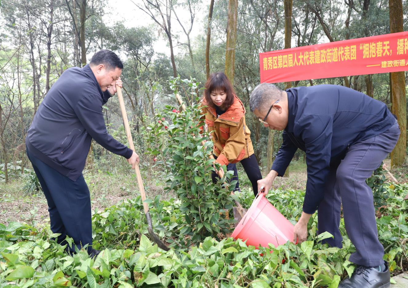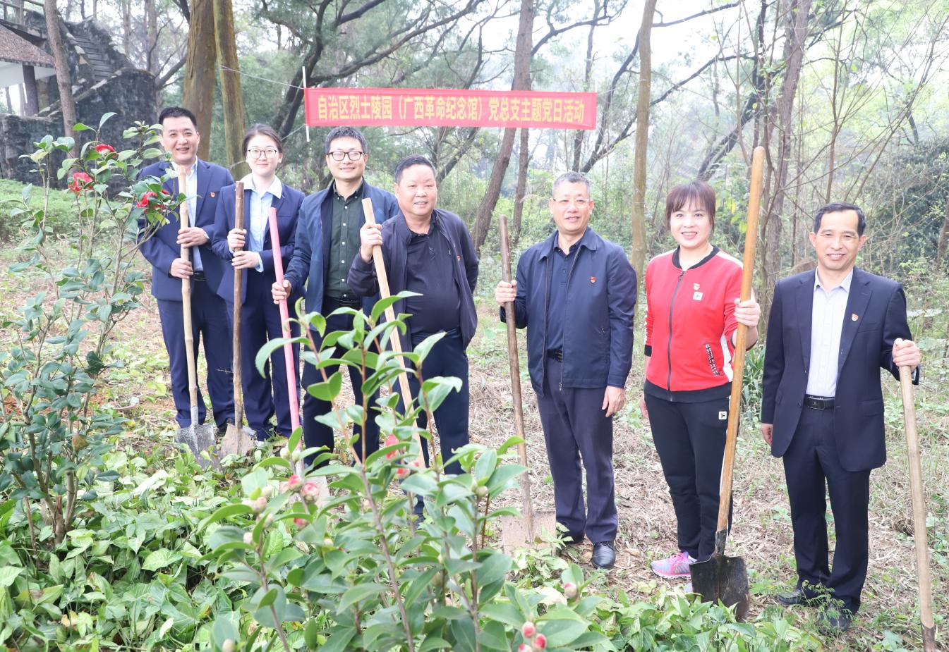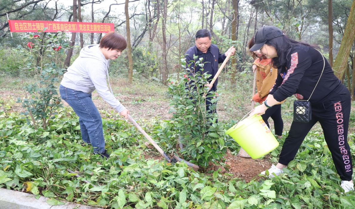 自治区烈士陵园(广西革命纪念馆)党总支与青秀区第四届人大代表建政街道代表团联合开展“拥抱春天,播种绿色”义务植树活动