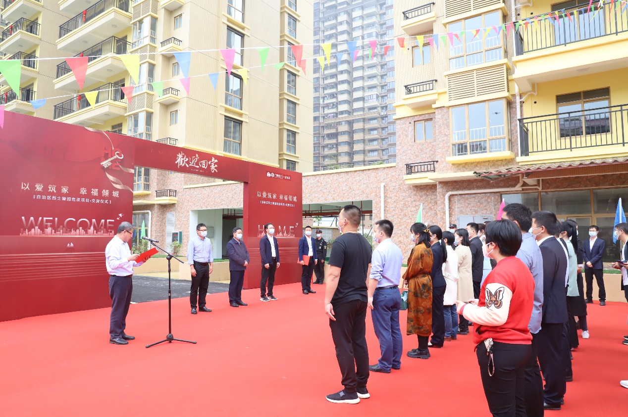 2022年3月31日,自治区烈士陵园和有关参建方联合举行危旧房改住房改造项目房屋交付仪式,建设方、施工方、监理方、代建方,以及项目新居业主参加仪式。
