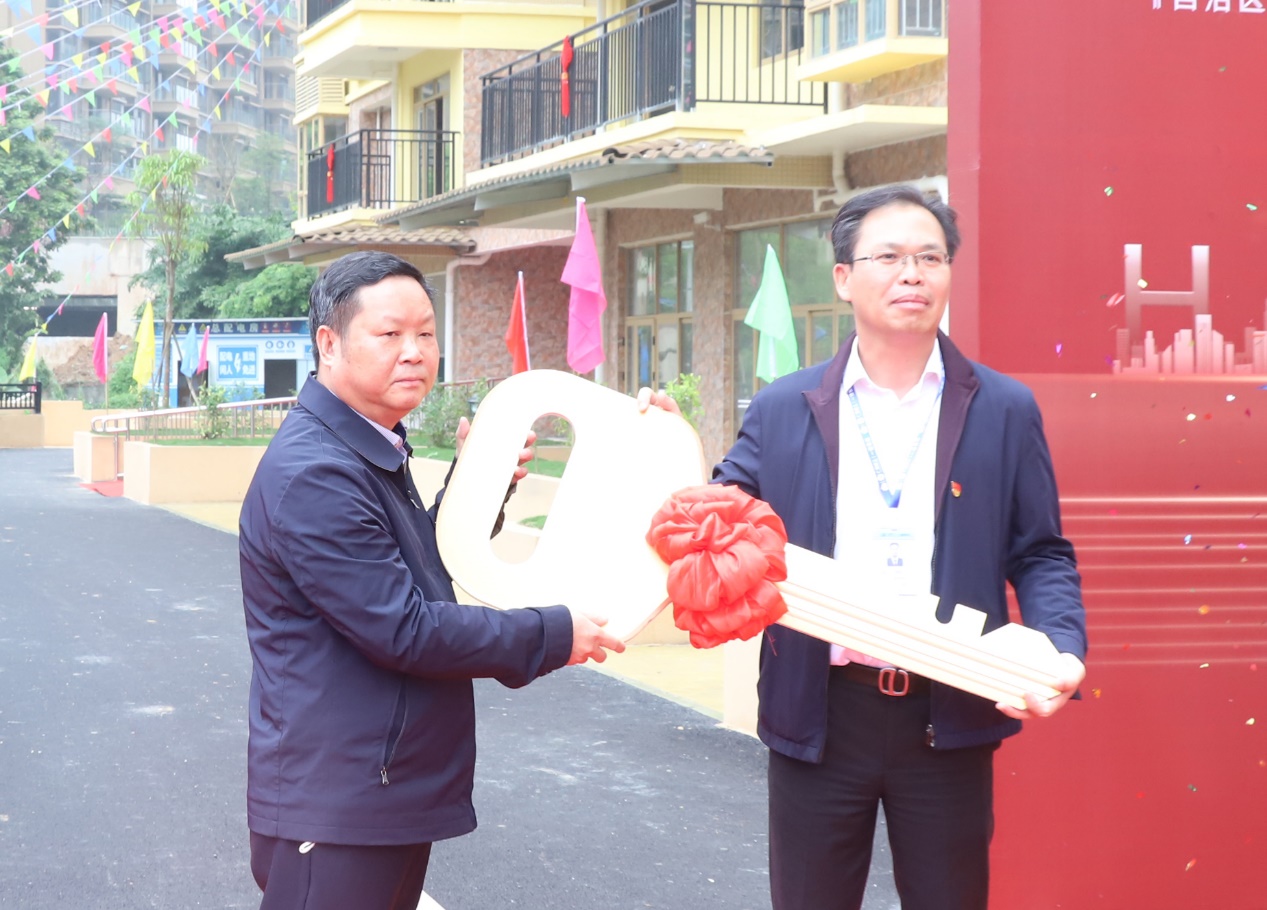 自治区烈士陵园主任肖志龙向还建户代表交付房屋