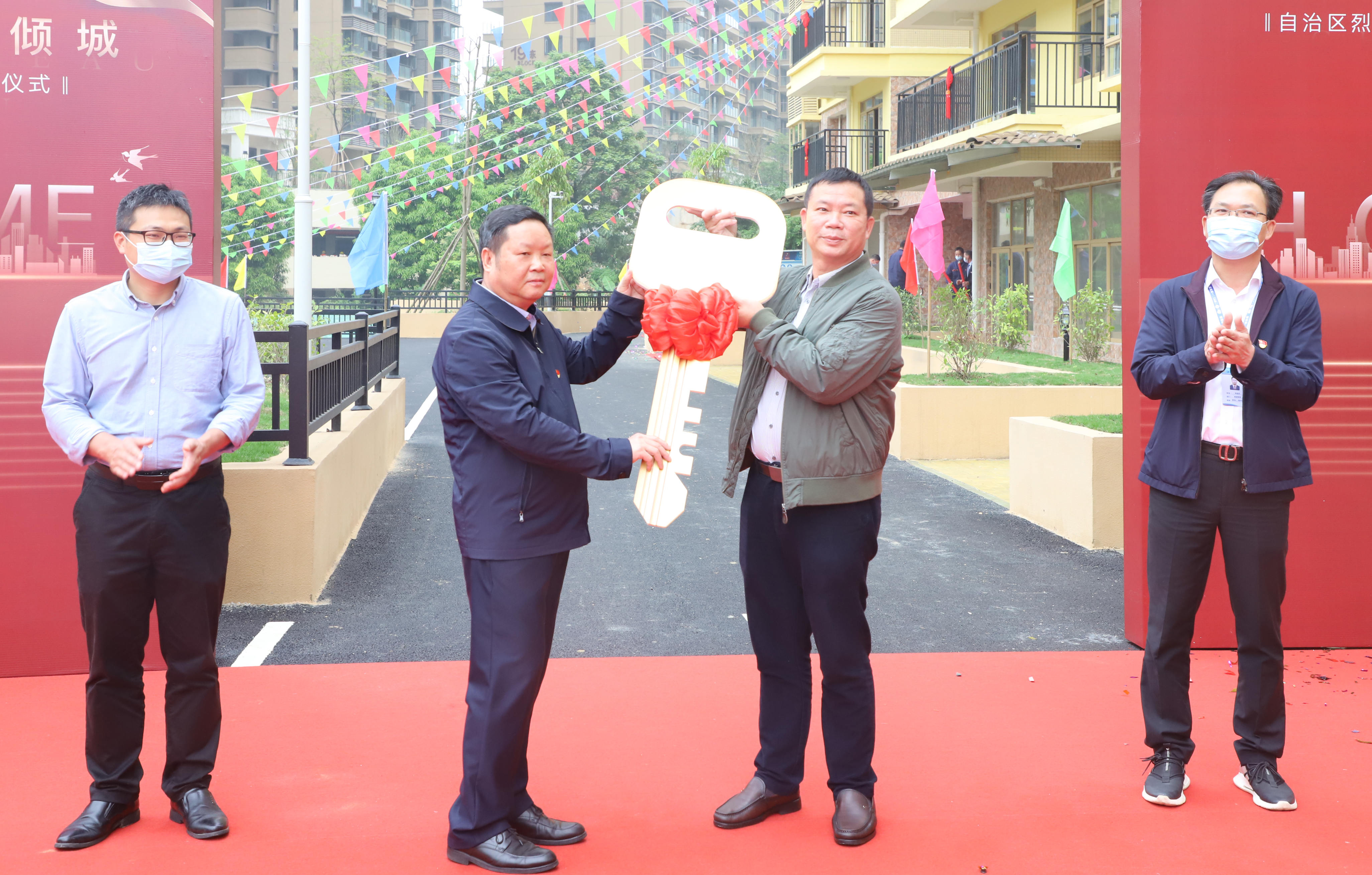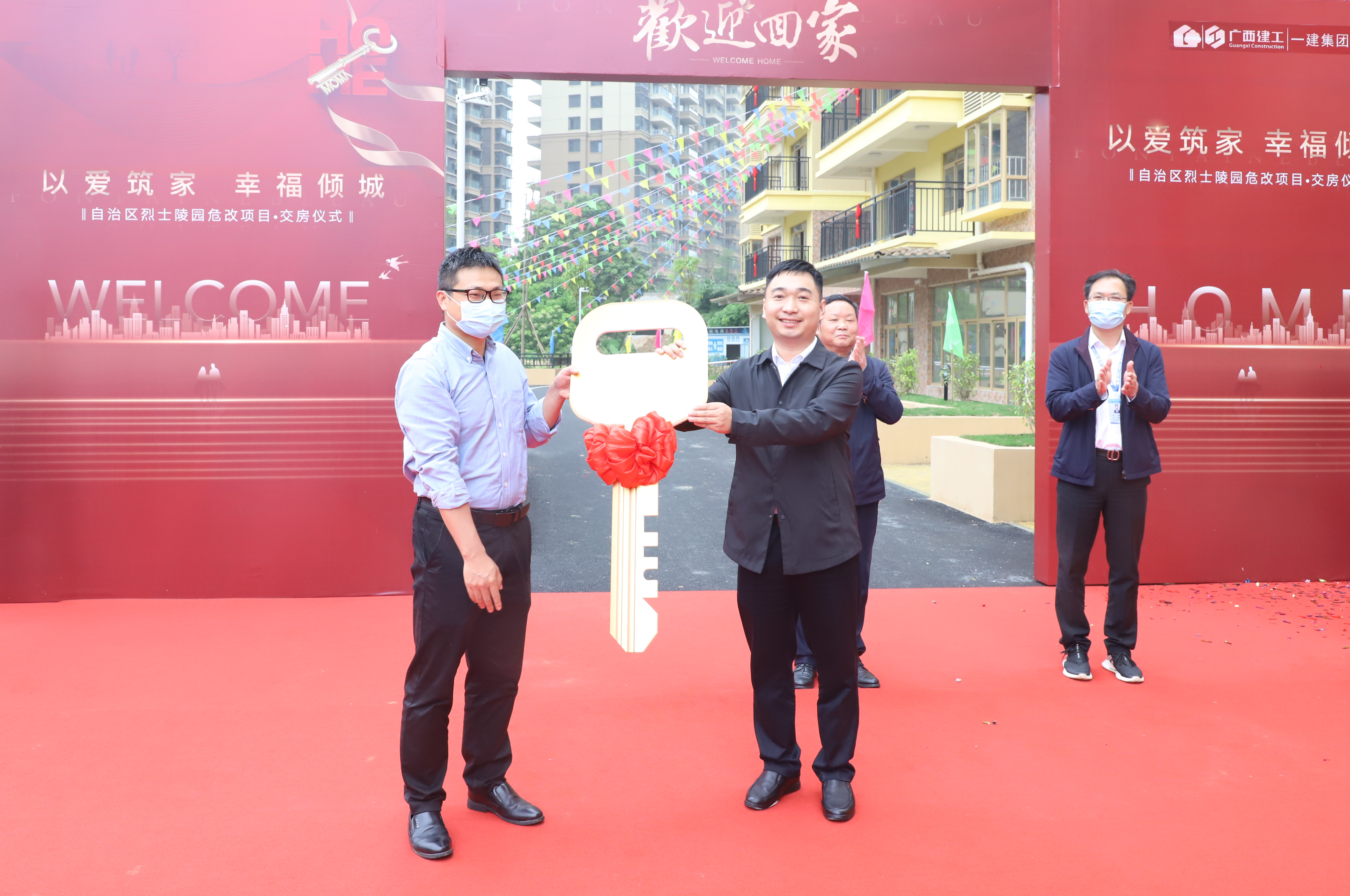 自治区烈士陵园主任肖志龙、广西建工一建集团董事长陈祖训等出席活动。陈祖训、肖志龙分别代表施工单位、建设单位致辞;随后,施工单位向建设单位交付房屋;建设单位有序向业主交付了房屋。