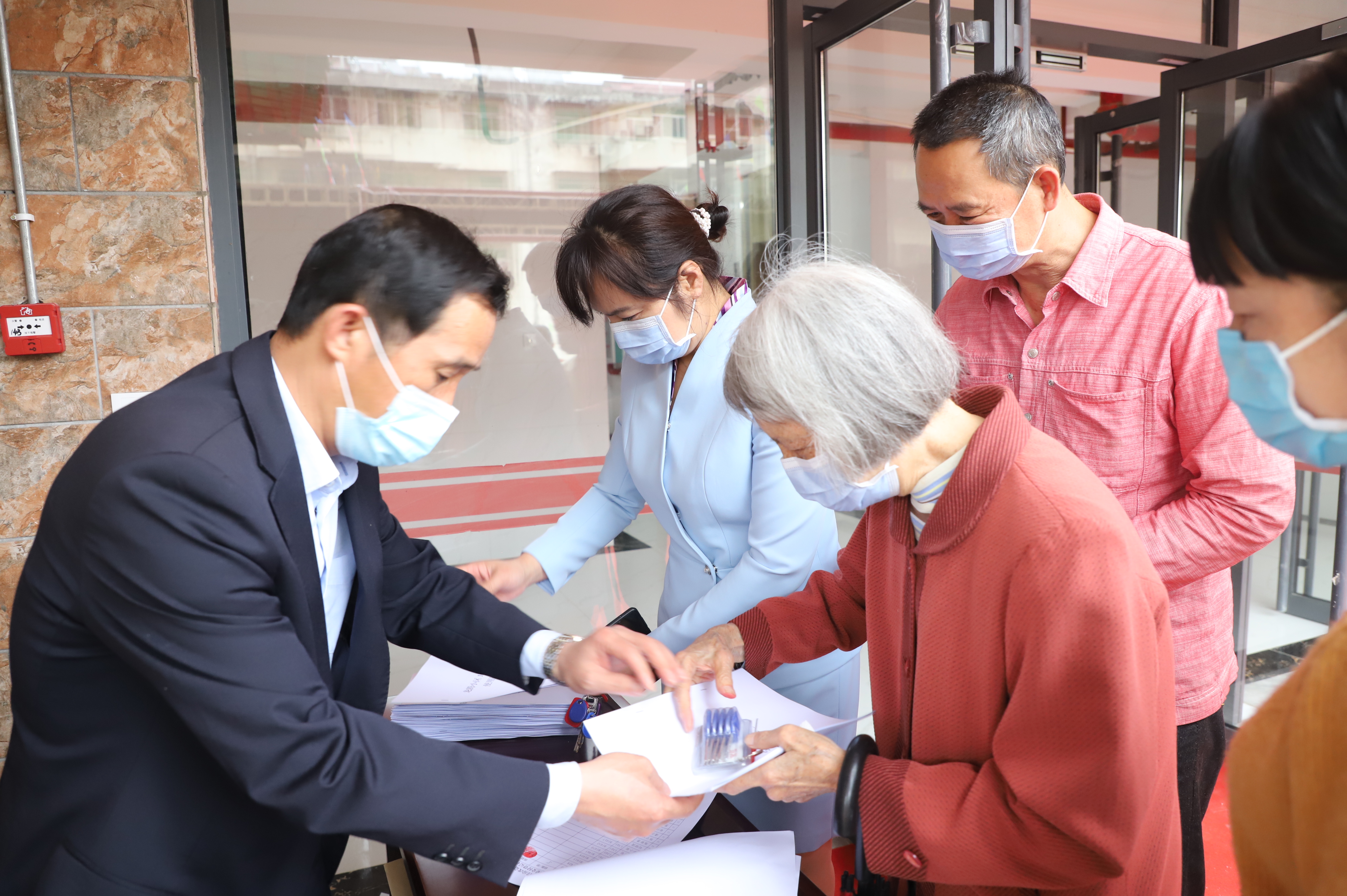 工作人员为业主办理房屋交付手续