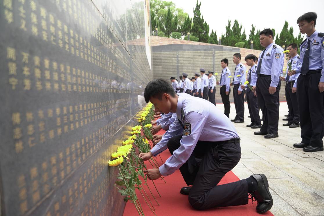 参加活动人员瞻仰烈士纪念碑和烈士名录墙并敬献鲜花