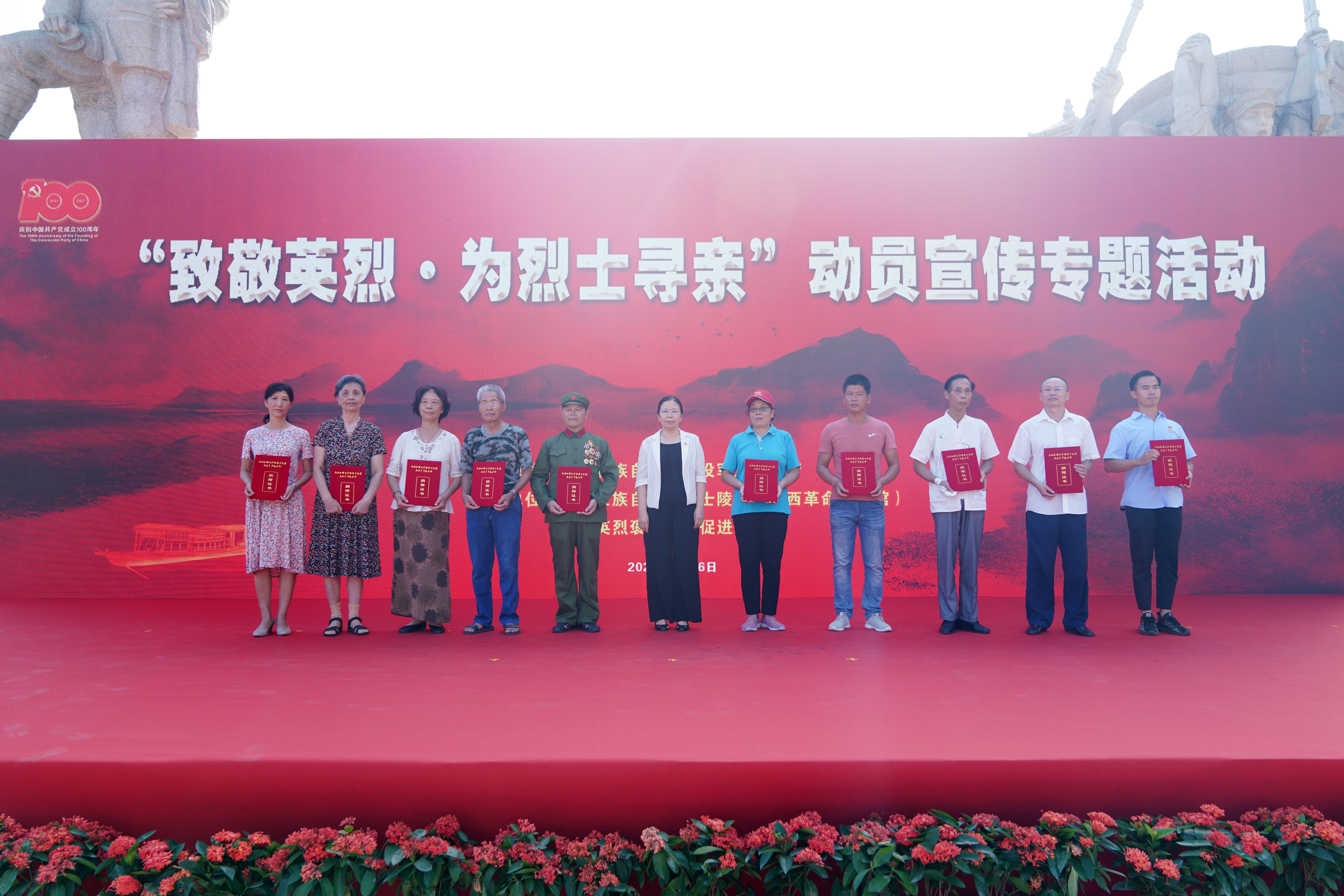 “为烈士寻亲”,在泪目的接力传播中感受英烈的爱国情怀,是对红色基因最好的传承。2021年,广西“为烈士寻亲”工作组联合广西广播电视台移动数字电视频道,共同打造了广西首档“为烈士寻亲”电视节目,并在活动现场播放了第一期作品《守望七十载 终圆寻亲梦》。